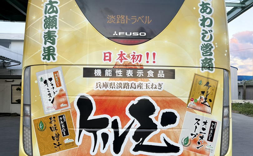 「神戸・三宮の駅で、『ケルたま』のラッピングバスが走っているのを知った時は、『ここまで使ってもらえるんだ』と純粋に嬉しかったですね。タマネギの品種で、こんな形でPRに使ってもらえることは滅多にありませんから、本当に感動しました」。